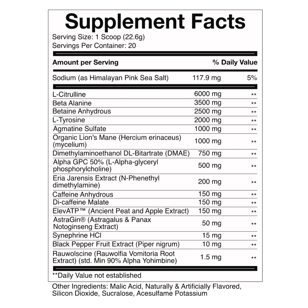 And obviously it wouldn’t be a complete pre workout if it didn’t cover pumps. With 6 grams of L-citrulline (no, not disingenuously pumping that number up using citrulline malate), 2 grams betaine and 117 mg of sodium Crystal Pump provides you with what you need to increase blood flow and feel greater pumps.
